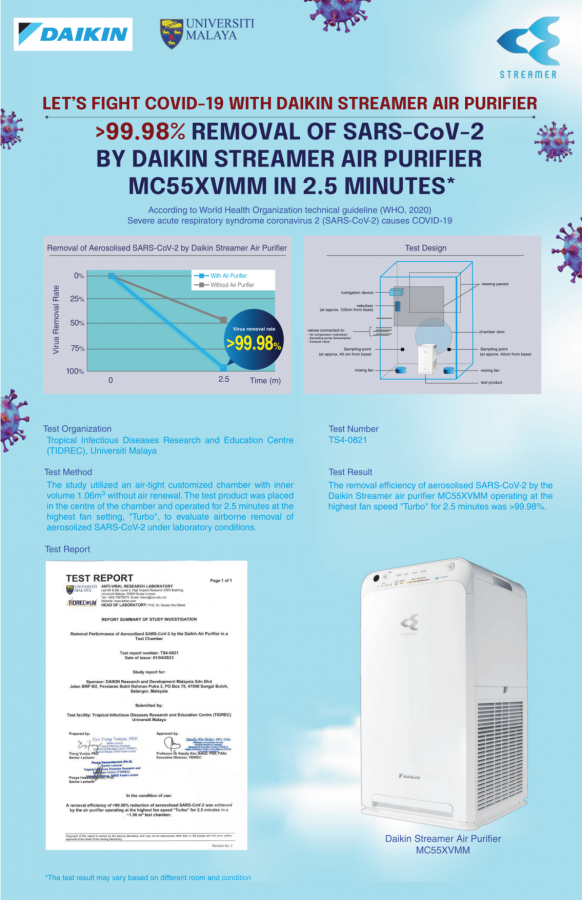 Daikin’s patented Streamer Technology decomposes harmful bacteria that may still be alive and active on its filters.