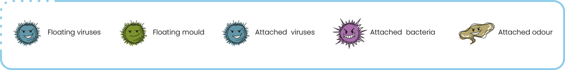 Releases ions which combine with components in the air. This leads to the formation of strong oxidizing agents that decompose airborne harmful substances.